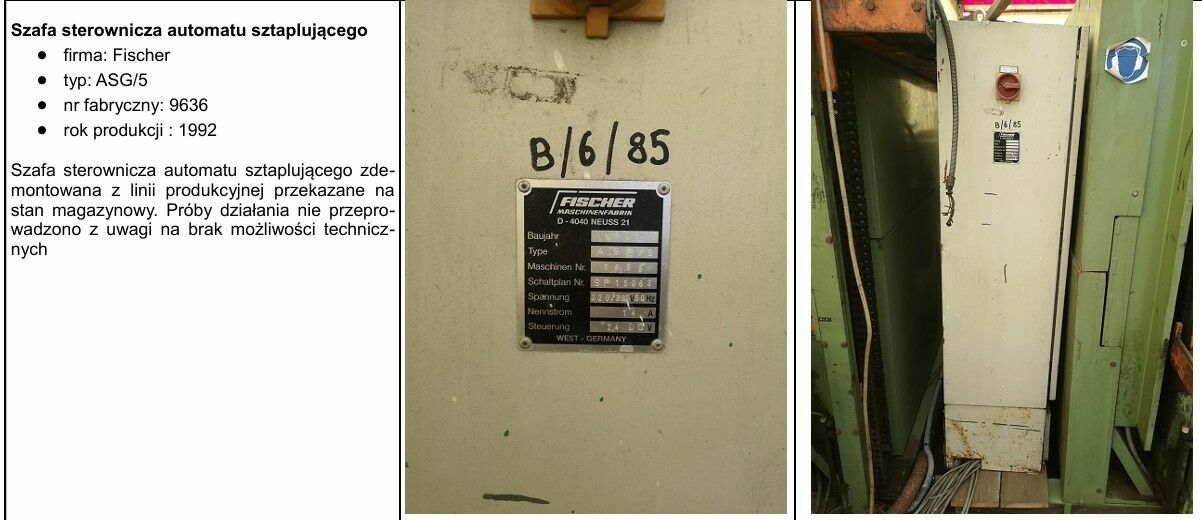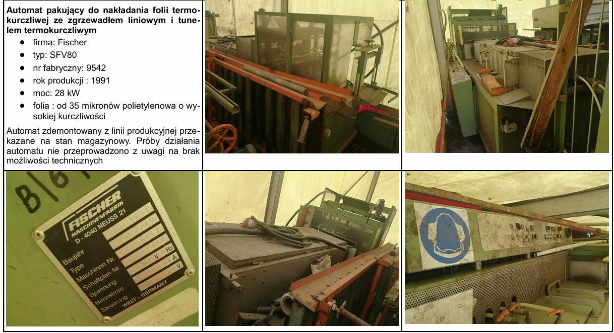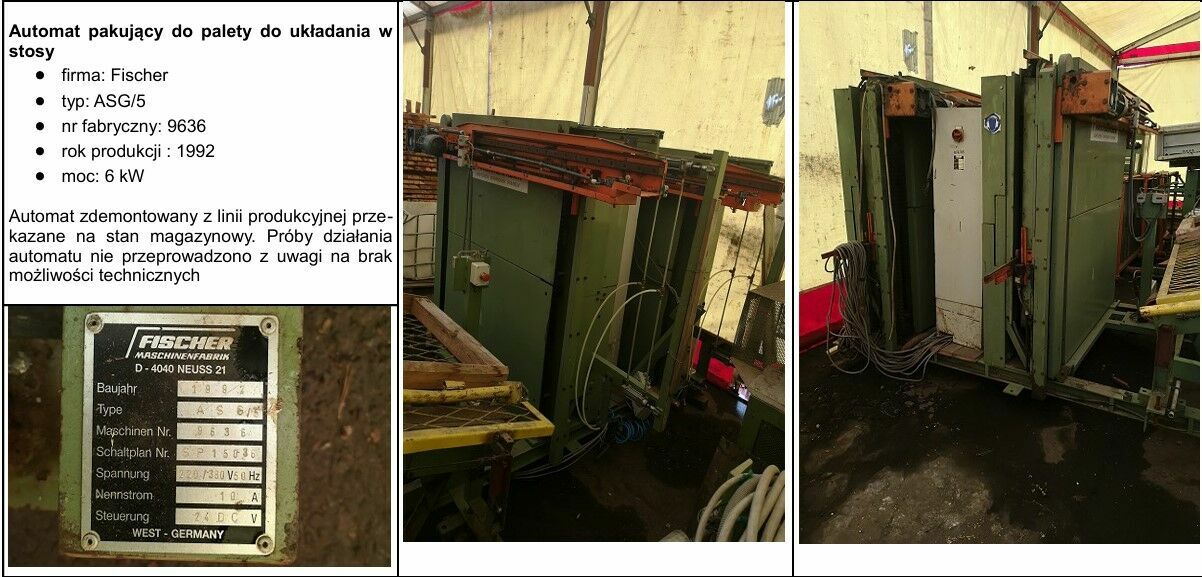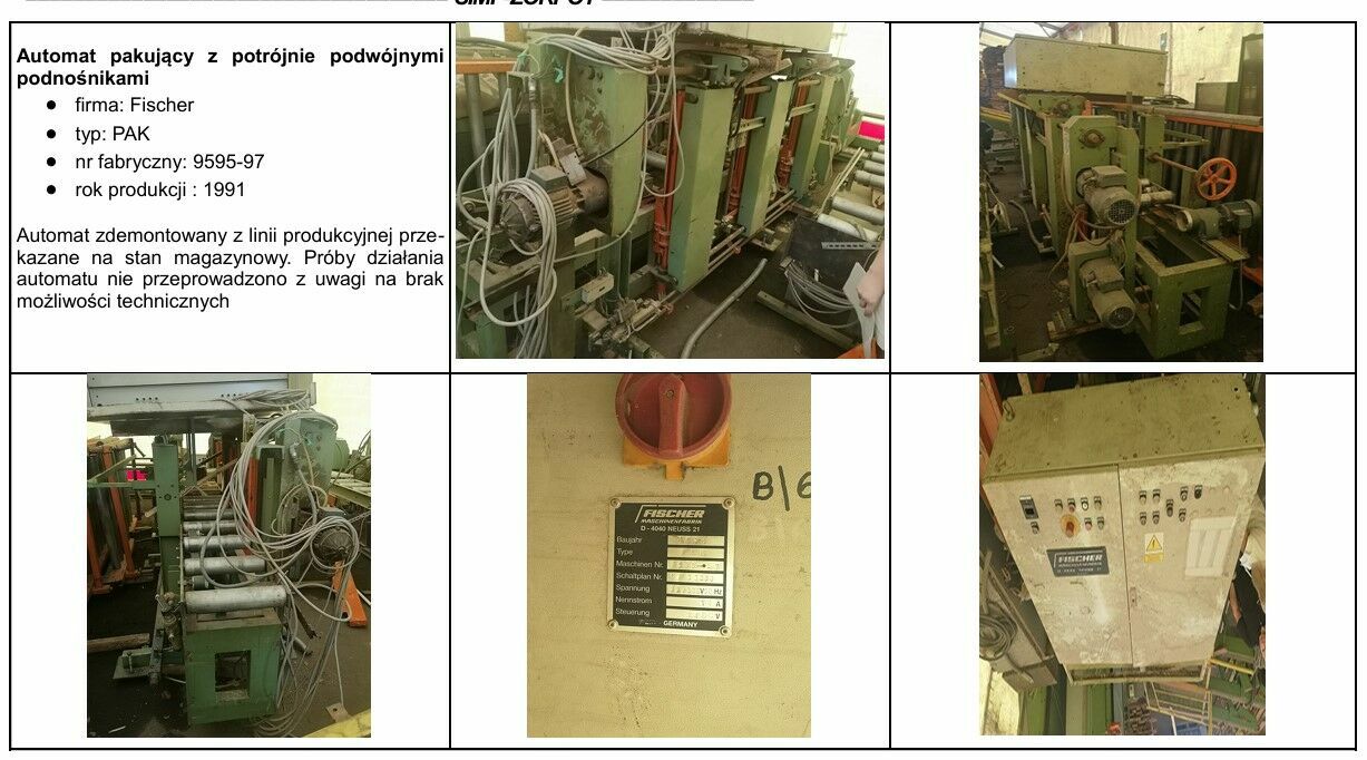 Syndyk masy upadłości osoby fizycznej nieprowadzącej działalności gospodarczej oferuje do sprzedaży z wolnej ręki w trybie konkursu ofert:1) Linia do sztaplowania – pakowania firmy: FISCHER za cenę 81 952,00 złotych netto,