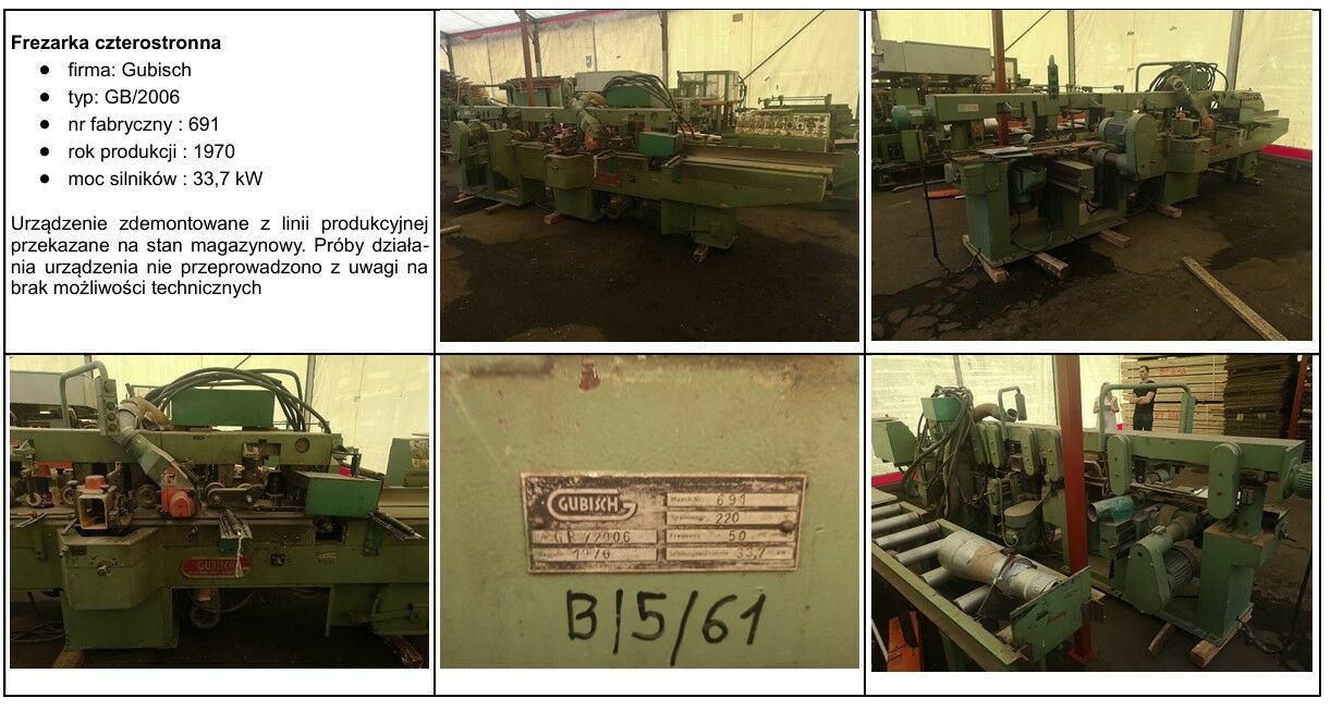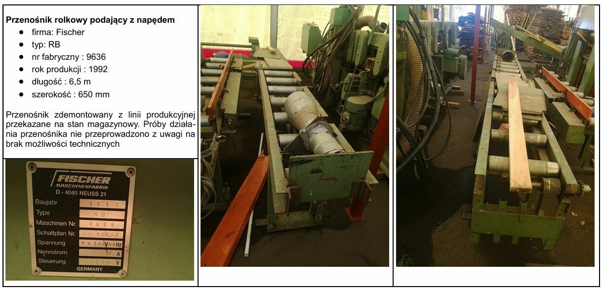 2) Linia pilarki szerokotaśmowej firmy: JAROMA model: DRKB-160 ; nr fabryczny: 256; rok produkcji : 1995 za cenę 207 154,00 złotych netto.
